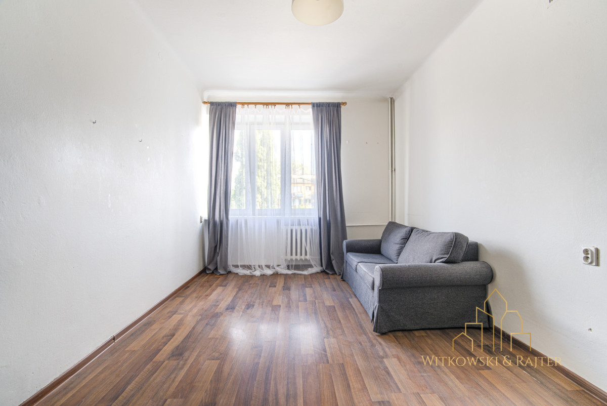 Mieszkanie o pow. 39 m2 w formalnie 1 pokojowe, z dużą oddzielną i widną kuchnią oraz przestronnym salonem (możliwość połączenia przestrzeni i stworzenia nowoczesnego aneksu kuchennego z wydzieloną strefą sypialnianą).